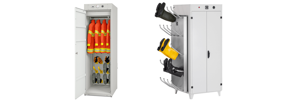 Unsere Trocknungsschränke zeichnen sich durch eine effiziente und schnelle Trocknung von Kleidern, Schuhen, Stiefel und Handschuhen aus. Die Verwendung von Hochwertigen Werkstoffen sowie erstklassiger Gebläse und Heizelemente, sorgt für einwandfreie und materialschonende Trocknung.