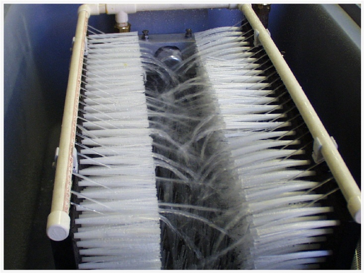 Das Wasser trifft durch kleine Sprühdüsen allseitig die Borsten und das Schuhwerk. Wird nun der Fuss mit dem Schuhwerk in der unteren und den seitlichen Bürsten gerieben, löst sich der Schmutz mühelos. Ein unterhalb der Wanne montierter Abfluss, wahlweise mit Schlammfang und Geruchverschluss (Version 3) ermöglicht den Wasserablauf und schützt vor Geruchsbelästigungen aus dem Abflusssystem. Das Fussventil hat eine stufenweise einstellbare Durchflussdauer von 7, 15 und 30 Sekunden. Dies ermöglicht eine optimale Einsparung des Wasserverbrauchs.