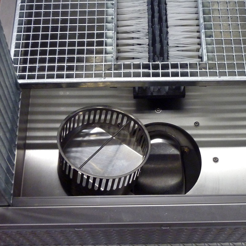 - Rost mit integrierten Bürsten und Wasserdüsen